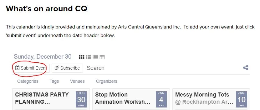 Visit our What’s On page to check the latest events from the Arts Central Queensland calendar, as well as links to other local events guides. There’s always something on, from library storytime to an indie grunge gig via a poetry reading. Getting involved in an arts-related event is a great way to get to know new people, soak up new ideas, and fill your well of inspiration.